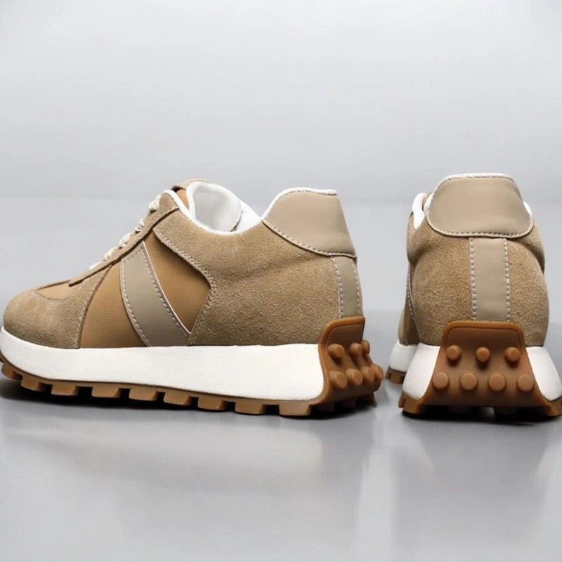 Avec nos chaussures, tu gagnes – selon le modèle – jusqu’à 10 cm supplémentaires grâce à un rehaussement invisible. Le rembourrage de haute qualité et la forme ergonomique assurent un confort optimal pour marcher toute la journée sans fatiguer tes pieds.