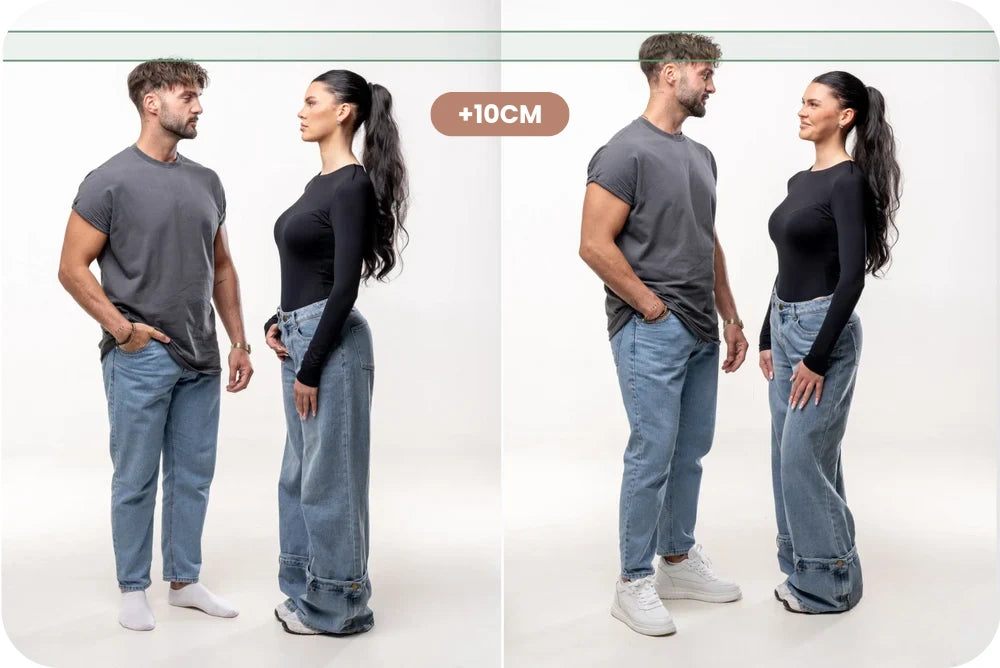 Que représenteraient 10 cm de plus pour ta confiance en toi ? Plus de présence. Plus d’assurance. Plus toi-même. Notre rehaussement invisible ne transforme pas seulement ta taille, mais aussi la façon dont tu te sens et dont les autres te perçoivent. Une force qui se voit, une assurance que tu ressens.